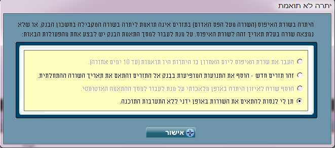 בשלב זה יש לבחור באפשרות - זהו תזרים חדש וללחוץ על אישור. התוכנה תעתיק אוטומטית תשעים יום אחורה אל תוך התזרים ותבצע איפוס יתרות.