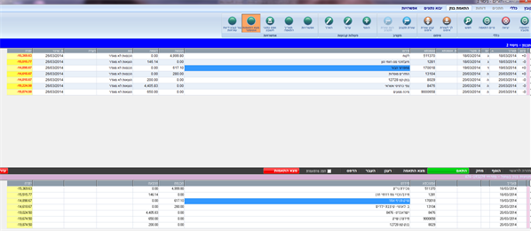 לאחר מספר דקות של הורדת הנתונים, יופיע מסך מפוצל שבחלקו העליון התזרים ובחלקו התחתון דף הבנק: